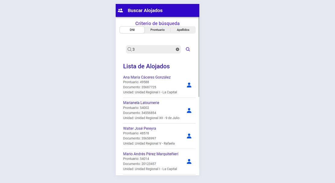 Se trata de un desarrollo en Ionic para la Policía de la Provincia de Santa Fe, que permite el acceso rápido a la información almacenada en el Sistema Web para la Gestión de Personas Privadas de su Libertad en el ámbito de la Provincia de Santa Fe. La aplicación permite determinar rápidamente si una persona se encuentra privada de su libertad, en qué establecimiento se encuentra alojada, y la información de contacto de la dependencia. Además pueden generarse los informes más importantes a los fines de la toma de decisiones. Finalmente, se incorporó un sistema de firma digital certficada a través de código QR que incluye una validación en el servidor y permite la generación de un PDF con la firma digital.